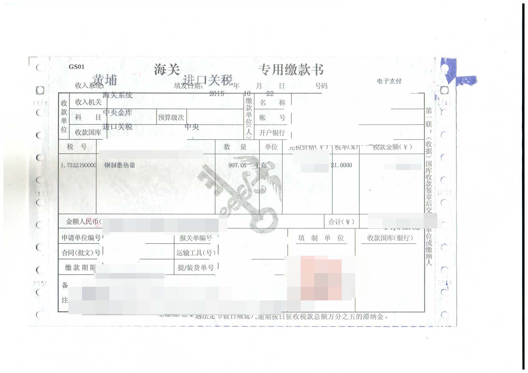 三、鋼制散熱器進(jìn)口報關(guān)案例展示