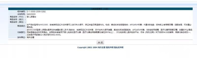 中國海關認為:保溫臺未裝有醫療設備,僅為搶救嬰兒提供搶救平臺,應按醫療用家具歸入品目94.02。